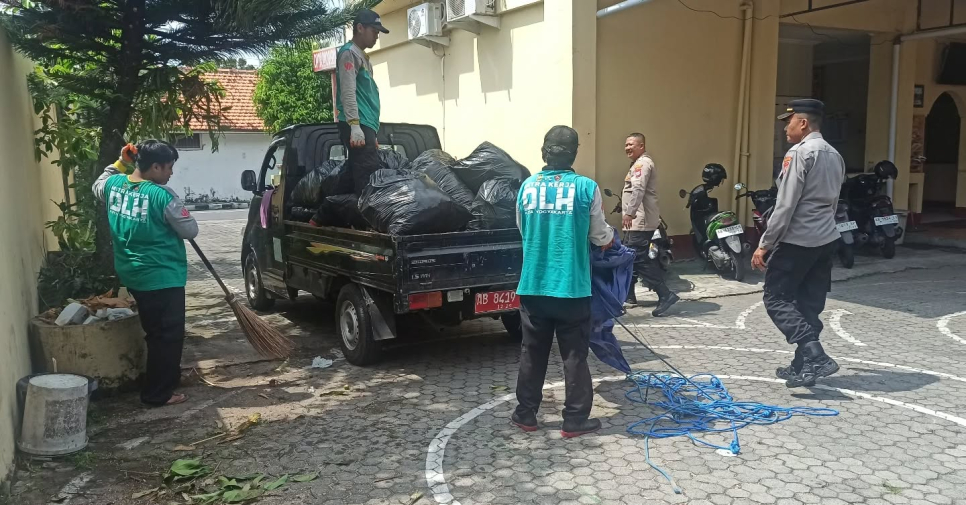 Anggota Polsek Pakualaman bersama Dinas Lingkungan Hidup (DLH) Kota Yogyakarta melaksanakan kerja bakti membersihkan lingkungan Mako Polsek Pakualaman pada Rabu pagi (19/11/2025).Kapolsek Pakualaman Polresta Yogyakarta AKP Margono, S.H., M.A.P. menyampaikan bahwa kegiatan ini merupakan wujud kepedulian terhadap kebersihan lingkungan agar suasana kerja menjadi lebih nyaman dan sehat.