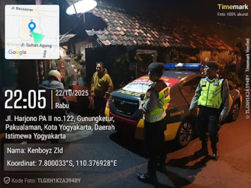 "Kami berharap kerja sama masyarakat dalam menjaga keamanan lingkungan. Laporkan setiap aktivitas mencurigakan agar wilayah kita tetap aman dan nyaman," tegasnya. (Humas Polsek Pakualaman)