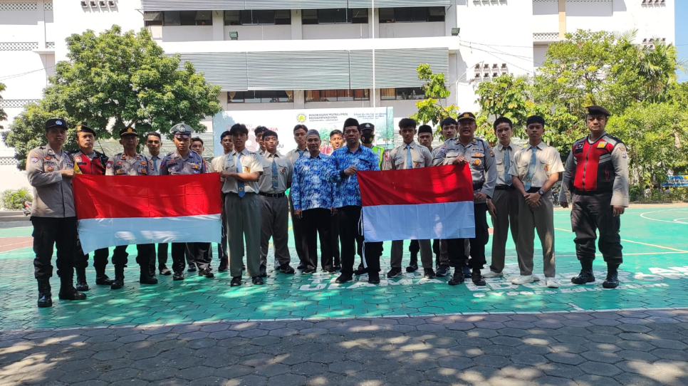 Penyerahan bendera dihadiri oleh perwakilan Guru/Ustadz Madrasah Mualimin, Panit Binmas Iptu Djaka Purwanto, jajaran Bhabinkamtibmas Polsek Wirobrajan, serta 12 orang Siswa Madrasah Mualimin Wirobrajan Yogyakarta.