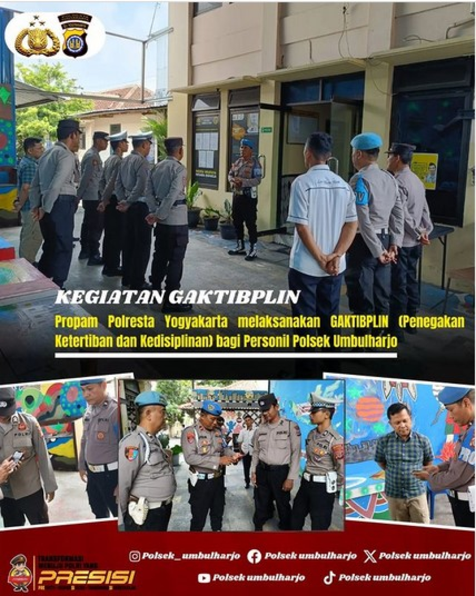 Dalam upaya menjaga kedisiplinan anggota, Propam Polresta Yogyakarta yang dipimpin oleh Ipda Argo melaksanakan kegiatan Penegakan Ketertiban dan Disiplin (Gaktibplin) di Mako Polsek Umbulharjo, Kamis (21/11/2024). Kegiatan ini merupakan bentuk pengawasan terhadap personel Polri sekaligus pelaksanaan tugas pokok Propam untuk memastikan ketaatan anggota terhadap aturan.Kegiatan Gaktibplin diawali dengan pemeriksaan sikap tampang personel, kemudian dilanjutkan pengecekan kelengkapan administrasi seperti KTA, KTP, SIM, STNK, dan surat lainnya, serta memastikan penggunaan gampol sesuai ketentuan. Propam juga memeriksa handphone pribadi anggota untuk mengantisipasi pelanggaran yang berpotensi terjadi.