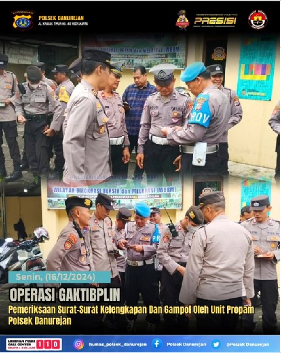 "Gaktibplin ini merupakan bagian dari pengawasan internal dan upaya penegakan disiplin guna meminimalisir terjadinya pelanggaran. Kami berharap melalui kegiatan ini, personel Polsek Danurejan dapat terus menjaga integritas dan memberikan pelayanan terbaik kepada masyarakat," ujar AKP Annas. (Humas Polsek Danurejan