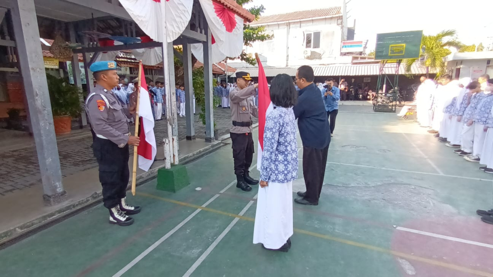 Sambut HUT RI ke 78, Kapolsek Danurejan Serahkan Bendera Merah Putih ke SMP Negeri 4 Yogyakarta