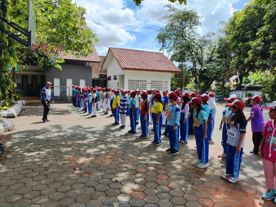 Siswa-siswi SD Negeri Ungaran tampak sangat antusias mengikuti seluruh rangkaian kegiatan, terutama saat mempraktikkan gerakan pengaturan lalu lintas di halaman sekolah.