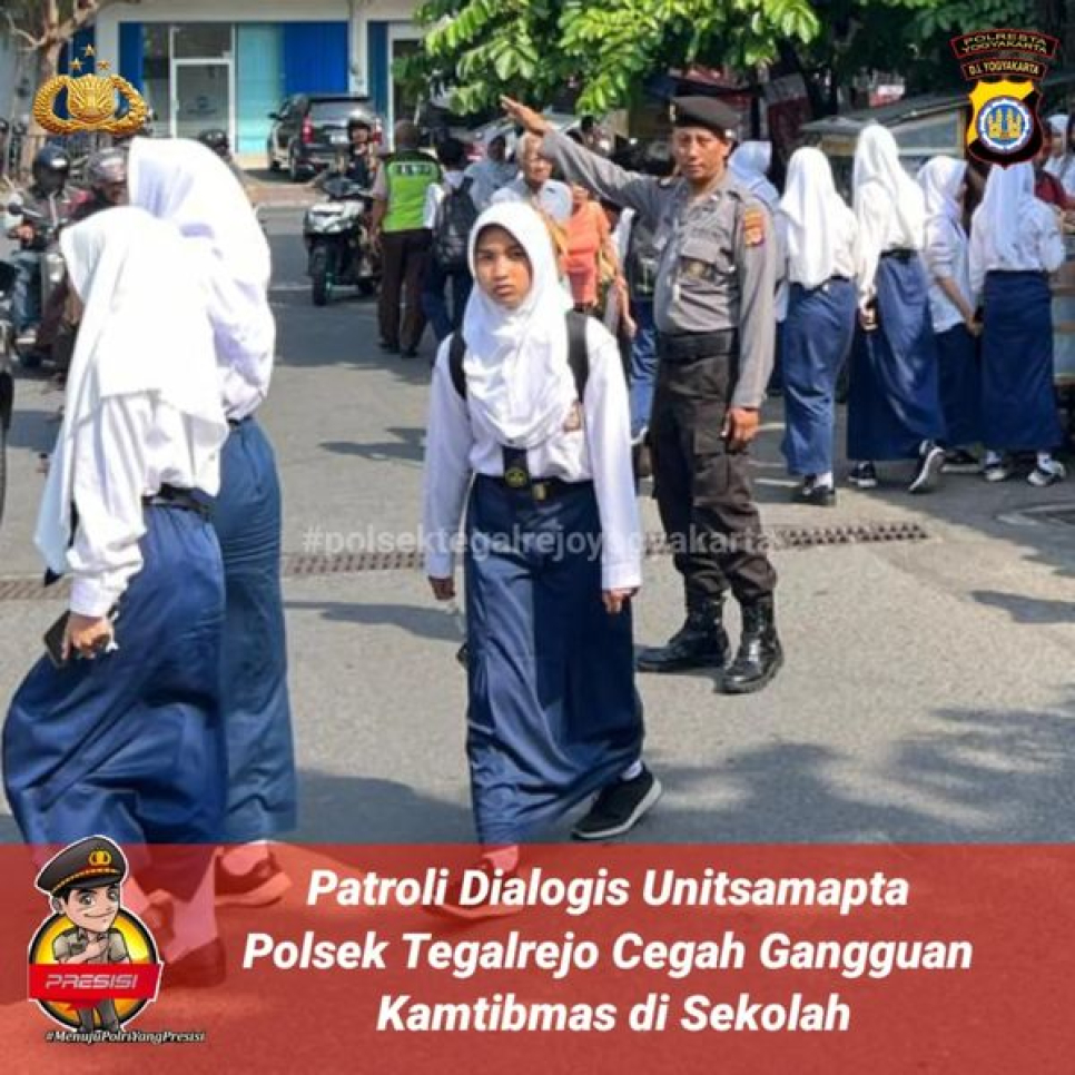 Unitsamapta Polsek Tegalrejo Rutin Lakukan Patroli Dialogis saat Jam Pulang Sekolah untuk Cegah Kecelakaan dan Jaga Ketertiban