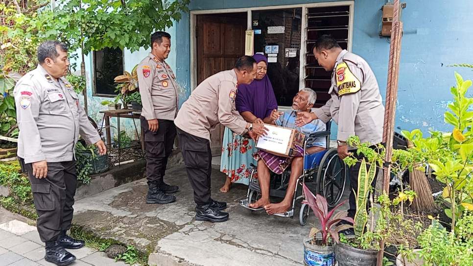 Penyaluran bantuan berlangsung dengan suasana hangat dan penuh kekeluargaan, di mana personel kepolisian juga menyempatkan diri mendengarkan aspirasi warga terkait situasi keamanan di lingkungan tempat tinggal mereka. (Humas Polsek Kotagede)