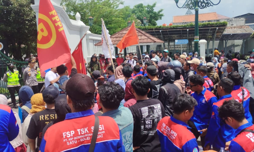 Personel Polresta Yogyakarta bersama jajaran Polsek melaksanakan pengamanan aksi unjuk rasa ...
