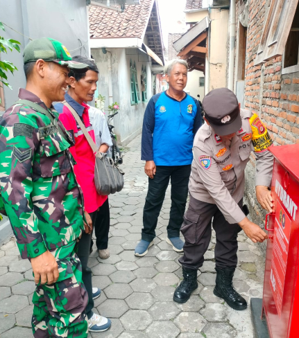 Bhabinkamtibmas Kelurahan Wirobrajan Aiptu Sumaryanto, bersama Sekretaris Kelurahan Wirobrajan ...
