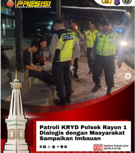 Polsek jajaran Rayon 1 Polresta Yogyakarta melaksanakan patroli dalam rangka Kegiatan Rutin ...