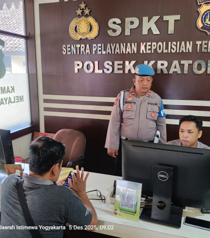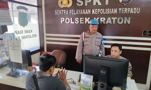 Pelayanan publik di Sentra Pelayanan Kepolisian Terpadu (SPKT) Polsek Kraton mendapatkan ...