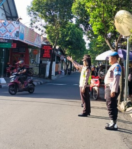 Personel Polsek Ngampilan Polresta Yogyakarta secara rutin melaksanakan Pos Pelayanan Pagi ...