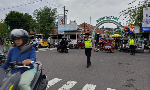 Senin pagi (5/1/2026), situasi lalu lintas di Simpang Pasar Ngasem, Kemantren Kraton, Kota ...