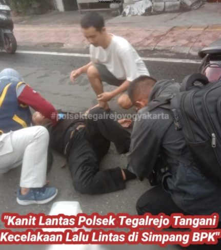 Kanit Lantas Polsek Tegalrejo AKP Agustinus Supriyadi bersama anggota menangani kejadian ...