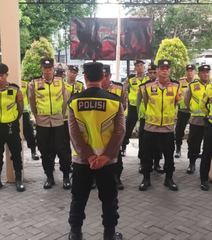 Menjelang malam pergantian tahun, Polsek Danurejan menggelar apel kesiapsiagaan di halaman ...