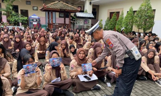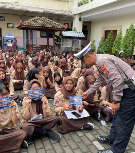 Unit Kamsel Satlantas Polresta Yogyakarta yang dipimpin Aiptu Joko melaksanakan sosialisasi ...