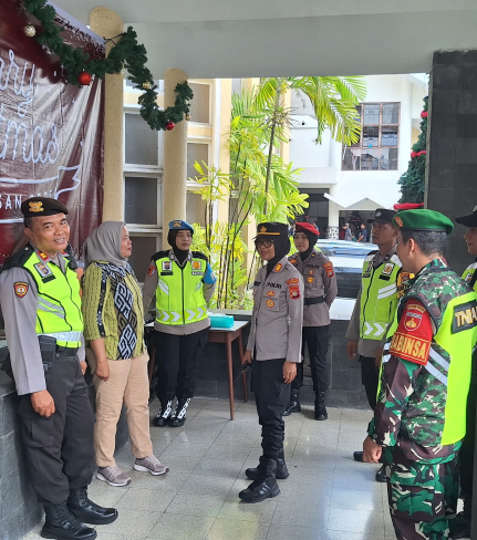 Aparat gabungan lintas instansi melakukan pengamanan pada ibadah kebaktian Perayaan Natal 2025 ...