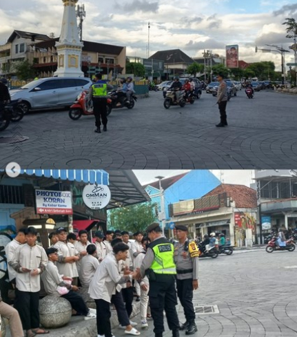 Jajaran Polsek Jetis melaksanakan kegiatan pelayanan masyarakat di kawasan ikonik Tugu Pal ...