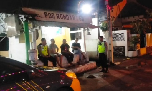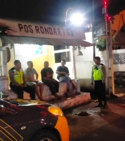 Personel Unit Samapta Polsek Mantrijeron melaksanakan patroli sambang dialogis di pos ronda ...