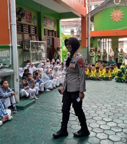 Kapolsek Ngampilan AKP Sriyati, S.Sos., M.Si., bersama anggotanya memberikan pembinaan karakter ...