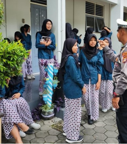 Unit Keamanan dan Keselamatan (Kamsel) Satlantas Polresta Yogyakarta menyambangi SMA Negeri 2 ...