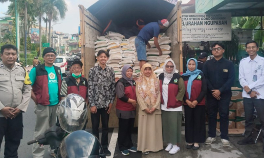 Bhabinkamtibmas Kelurahan Ngupasan, Aiptu Aris P., melaksanakan pengamanan kegiatan distribusi ...