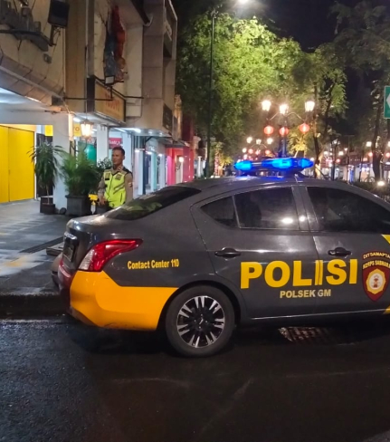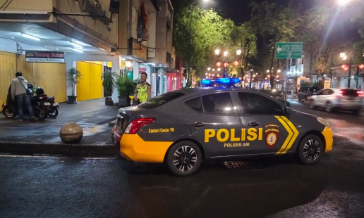 Personel Unit Samapta Polsek Mantrijeron yang dipimpin oleh Aiptu Totok melaksanakan patroli ...