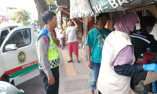 Personel Polsek Jetis melaksanakan pemantauan dan pengaturan lalu lintas di kawasan simpang ...