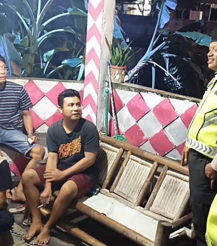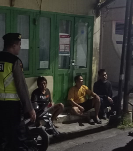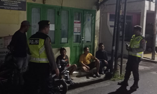 Personel Polsek Jetis Polresta Yogyakarta melaksanakan patroli malam hari dengan menyambangi ...