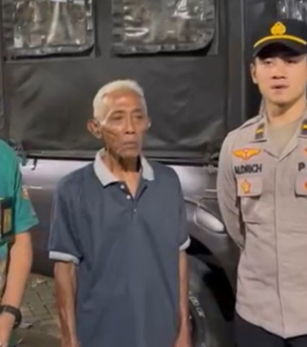 Pamapta II Polresta Yogyakarta, Ipda Aldrich, menerima seorang lansia yang terlantar di ...