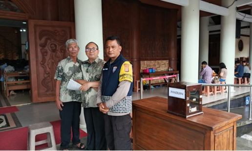 Personel Bhabinkamtibmas Kelurahan Baciro, Aipda Parjo, melaksanakan pengamanan ibadah Misa ...