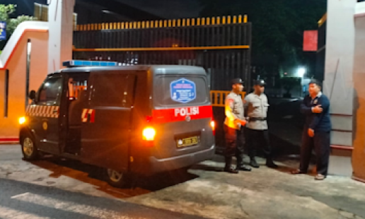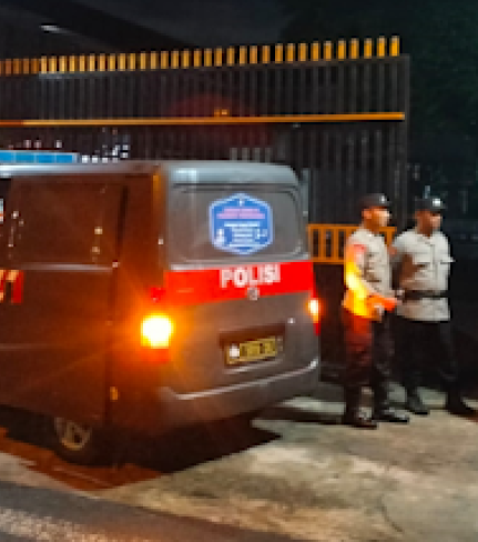 Personel Polsek Kraton melaksanakan patroli malam rutin dengan fokus menyambangi Satpam di SMP ...