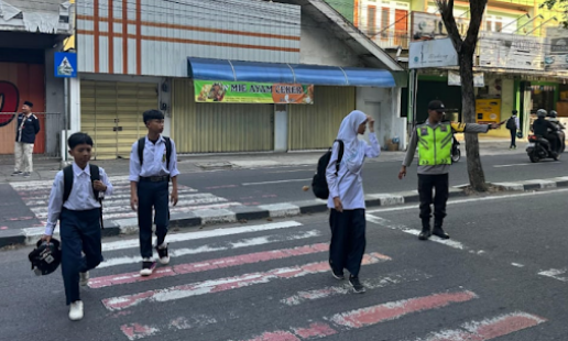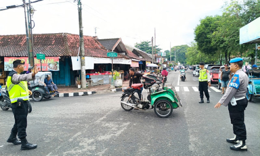 Personel Polsek melaksanakan kegiatan Layanan Pagi berupa pengaturan arus lalu lintas di ...