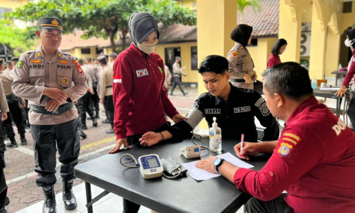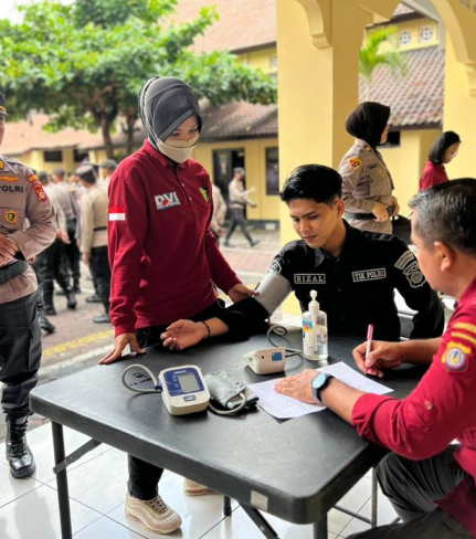 Di halaman tengah Mapolresta Yogyakarta sedang berlangsung kegiatan pemeriksaan Kesehatan ...