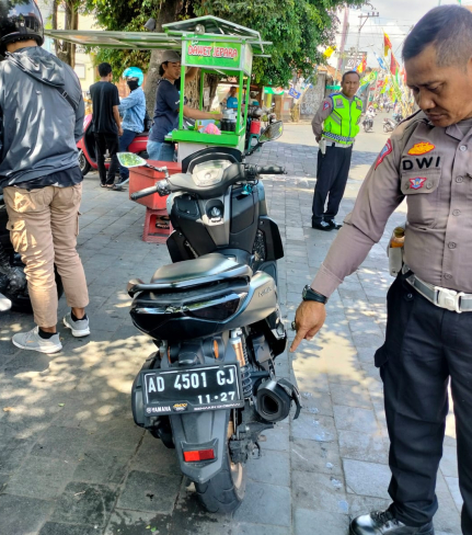 Polsek Kotagede Polresta Yogyakarta melakukan razia kendaraan bermotor knalpot brong di depan ...