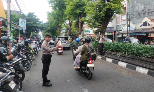 Kapolsek Jetis Kompol Sumalugi, S.H., M.H. bersama anggotanya bergabung dengan personel ...