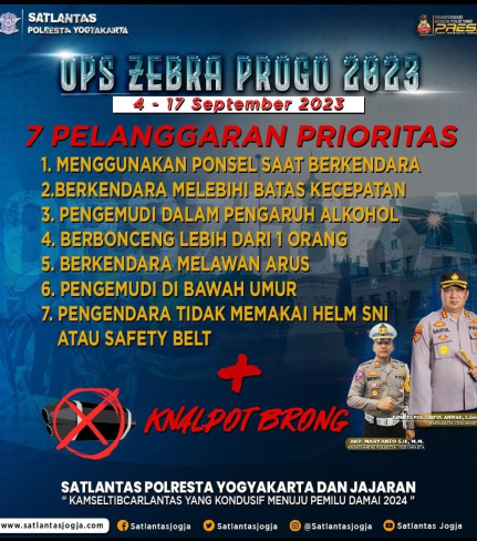 Polresta Yogyakarta menggelar Operasi Zebra Progo 2023 selama 14 hari, mulai tanggal 4 hingga ...