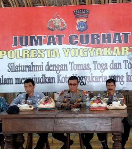 Polresta Yogyakarta menggelar Jumat Curhat di Pendopo Ndeluweh, Jalan Ngeksigondo No. 54, ...