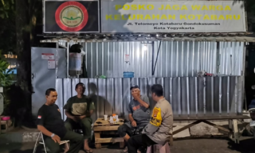 Bhabinkamtibmas Kelurahan Kotabaru, Aiptu Kobhet, melaksanakan sambang kamtibmas di Posko Jaga ...